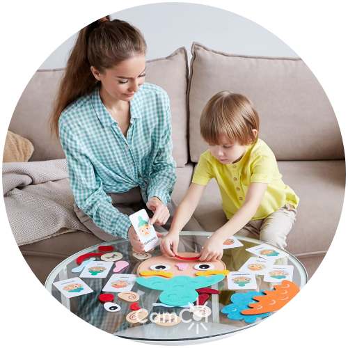 As crianças podem se envolver em um emocionante jogo de mudança emocional, onde combinam diferentes cartas para criar rostos que correspondem a uma variedade de sentimentos.