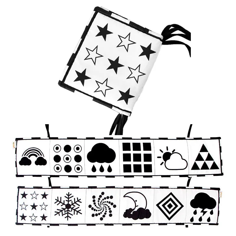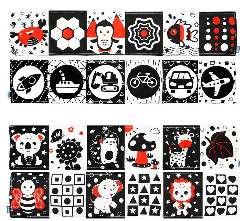Livro De Pano Preto E Branco De Alto Contraste Para Bebês especialmente projetado para os preciosos olhinhos dos bebês recém-nascidos. Com páginas em preto e branco de alto contraste, este livro não é apenas uma fonte de entretenimento, mas também uma ferramenta educativa para estimular os sentidos visuais do seu bebê desde os primeiros dias.